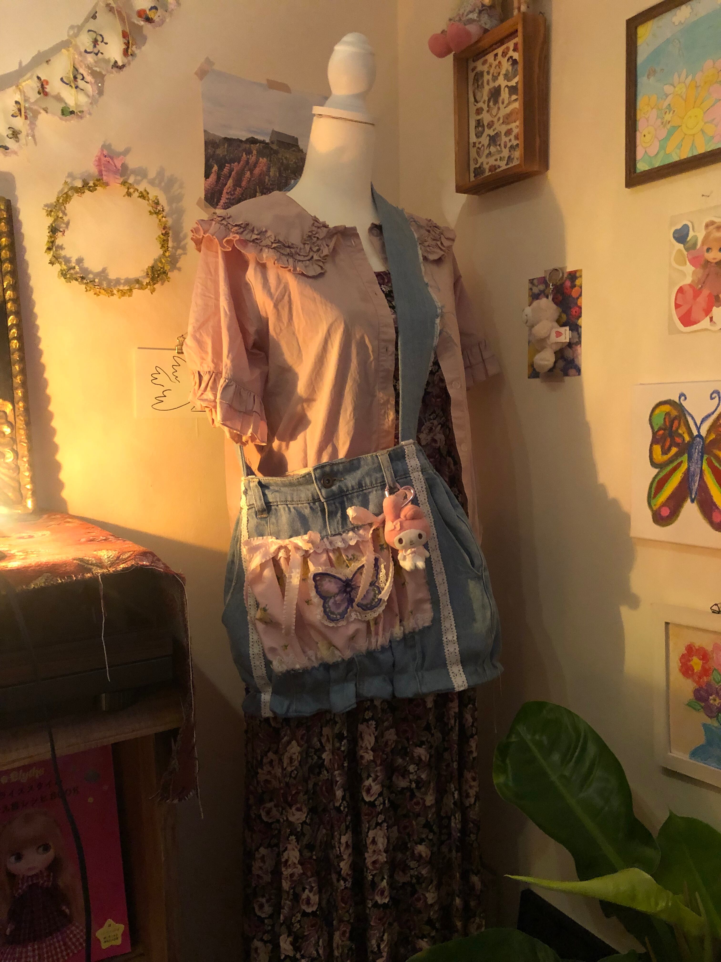 蝶々のパーツはアメリカのGジャンから切り取ったものだったり、