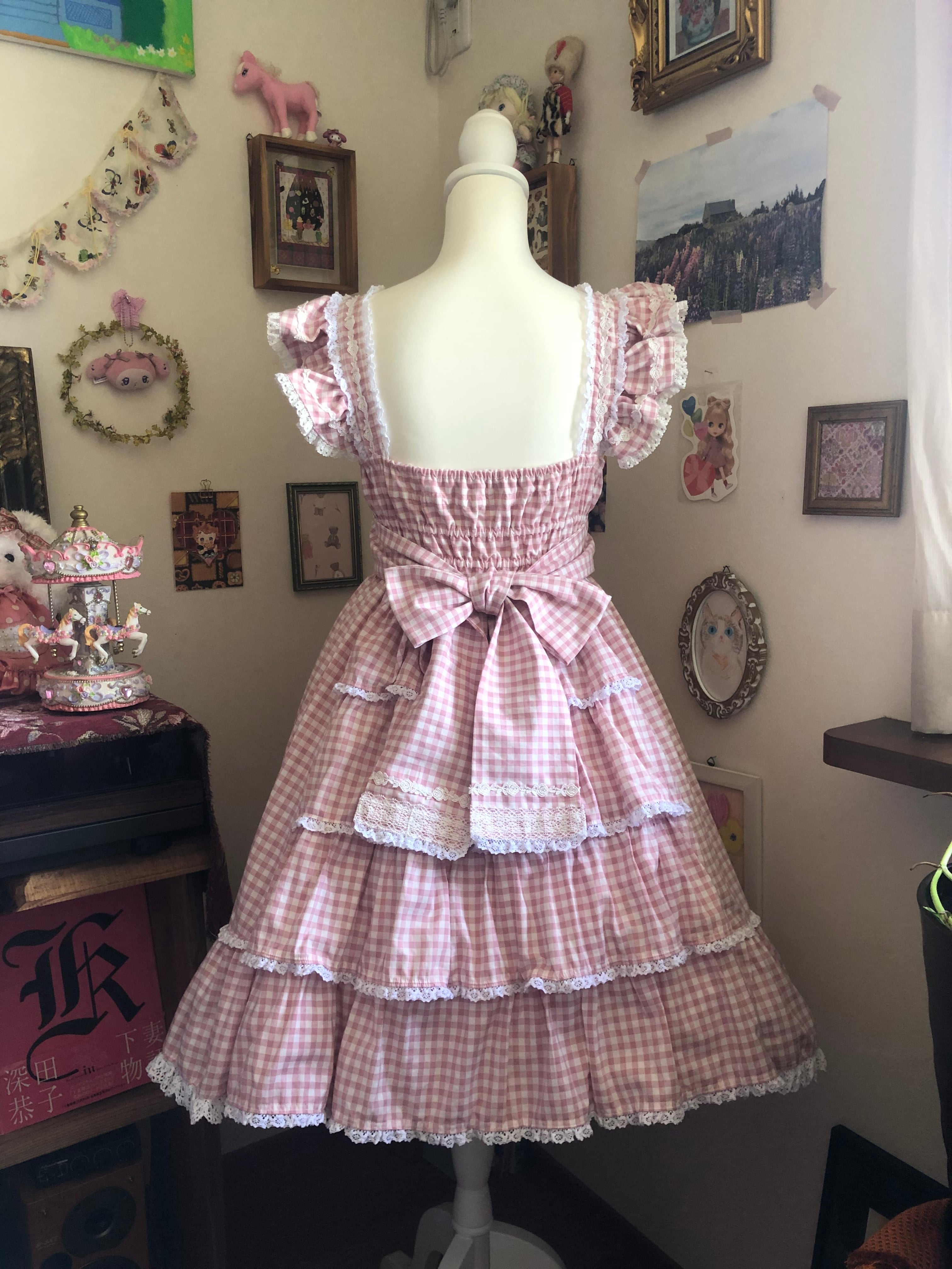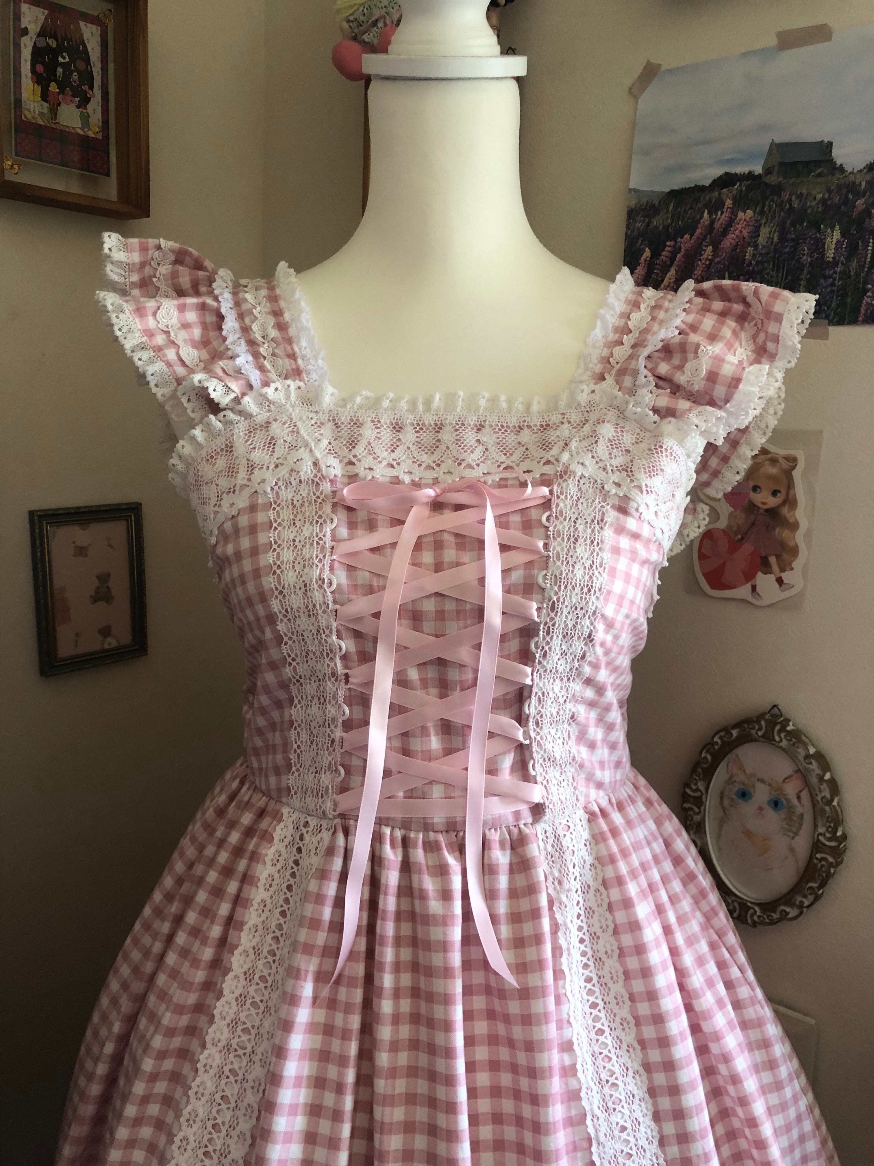 ギンガムチェックは定番ですが、絶妙なピンク色の生地はなかなかなく、この生地で可愛いジャンパースカートを作りたいと思い作成しました。